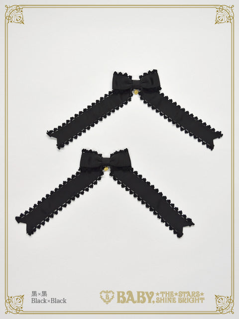☆ Black grosgrain ribbon×White lace×Gold princess drop