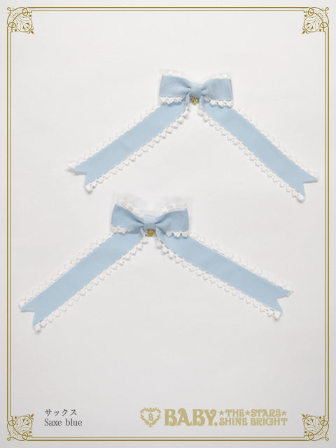 ☆ Saxe blue grosgrain ribbon×White lace×Gold princess drop