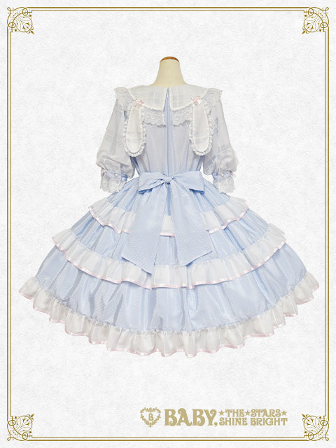 ☆Saxe blue×White×White lace×Pink ribbon